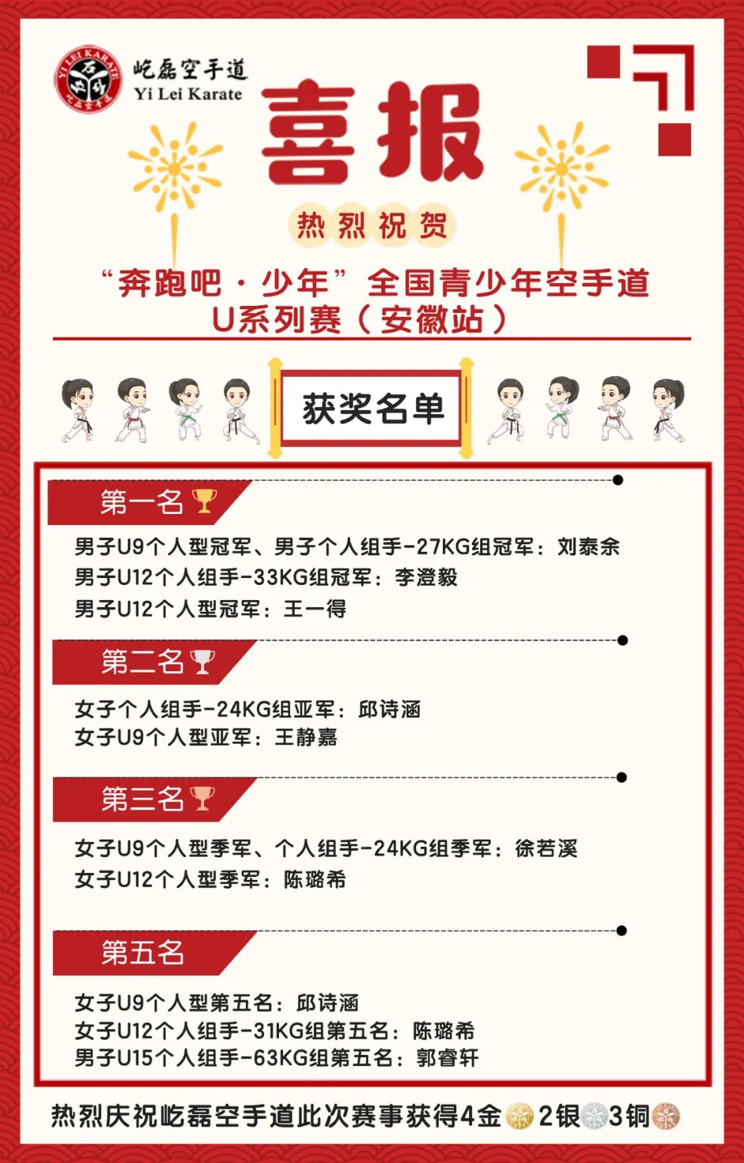 屹磊學員們在比賽中奮力拼搏,全力以赴。每一個(gè)證書(shū)和(hé)獎杯都是你(nǐ)們努力拼搏的成果,也是辛苦訓練最好的回報!讓我們一起加油,共同在空(kōng)手道(dào)的路途上(shàng)大(dà)步前行(xíng)吧(ba)!